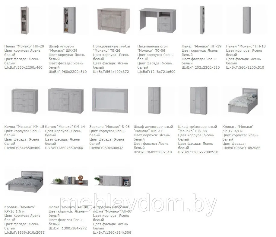 Спальня Монако - Комплект 1 - Кашемир/Айриш MF03 (BTS)