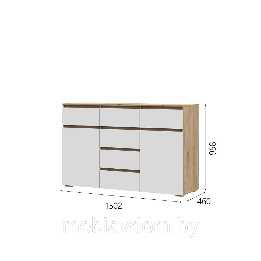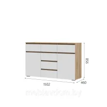 Комод Хелен КМ-05 (6 ящиков) - Белый/Дуб крафт золотой (1,5м)